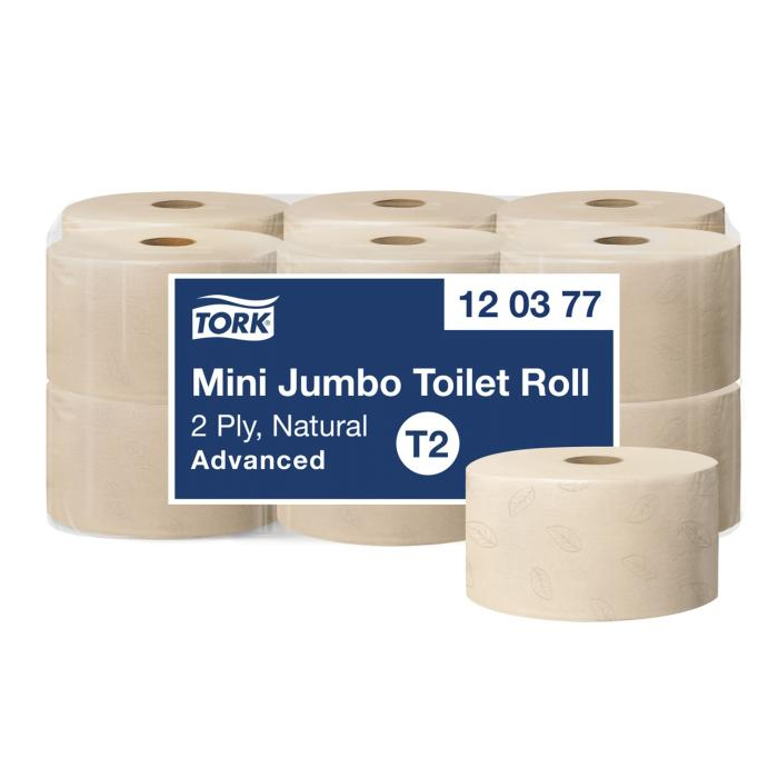 Tork Mini Jumbo systém je časovo efektívny a znižuje náklady, pričom ponúka oveľa väčšie množstvo toaletného papiera ako štandardný kotúč. Tork Mini Jumbo toaletný papier v kotúči Advanced dvojvrstvový výborne vyvažuje náklady a potrebný výkon a je ideálny pre stredne až vysoko frekventované prostredia. Hygienický papier je vyrobený zo 100 % recyklovaných vláken.