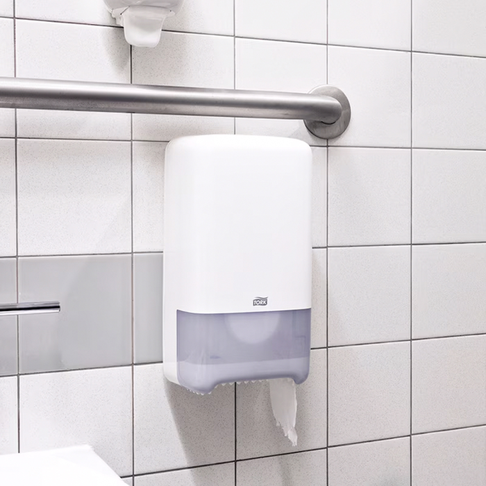 Dvojitý zásobník Tork na toaletný papier strednej veľkosti na kotúči je moderný a efektívny systém vhodný pre nízko až stredne frekventované toalety a umyvárne s vysokým dôrazom na spokojnosť zákazníkov. Zabezpečuje sa tak vysoká účinnosť a to, že toaletný papier je pre hostí vždy k dispozícii. Tork kotúč extra jemného toaletného papiera strednej veľkosti ponúka vynikajúci vzhľad so správnymi vlastnosťami.
