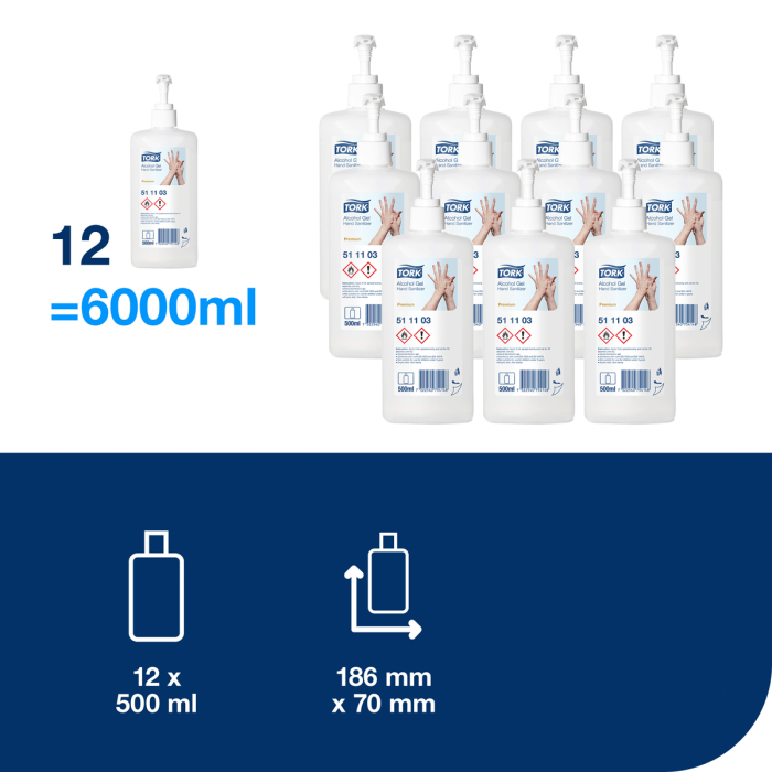 Tork Alcohol gélový dezinfekčný prostriedok s 80 % obsahom denaturovaného liehu efektívne ničí mikroorganizmy a pomáha tak predísť šíreniu infekcií. Efektívny voči rôznym organizmom vrátane obalených vírusov, norovírusov a rotavírusov. Ideálny na každodennú hygienu rúk aj v zdravotníctve. Vhodné pre všetky Tork zásobníky na mydlá a dezinfekčné prostriedky (S4). Účinné voči rôznym problémovým organizmom - spĺňa normy EN1500, EN 12791 a EN14476 (všetky obalené vírusy, ako sú HIV, SARS, korona, HBV, HCV, chrípka H1N1, H5N1 atď. a aj rotavírus a norovírus). Dermatologicky testované zloženie bez lepkavých zvyškov.