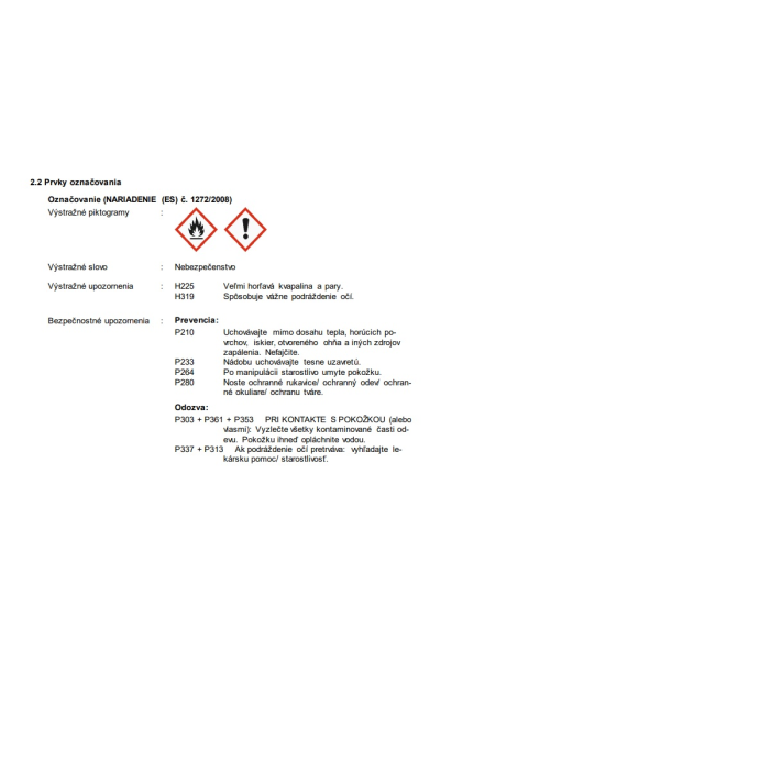 Horľavé kvapaliny, Kategória 2 H225: Veľmi horľavá kvapalina a pary.