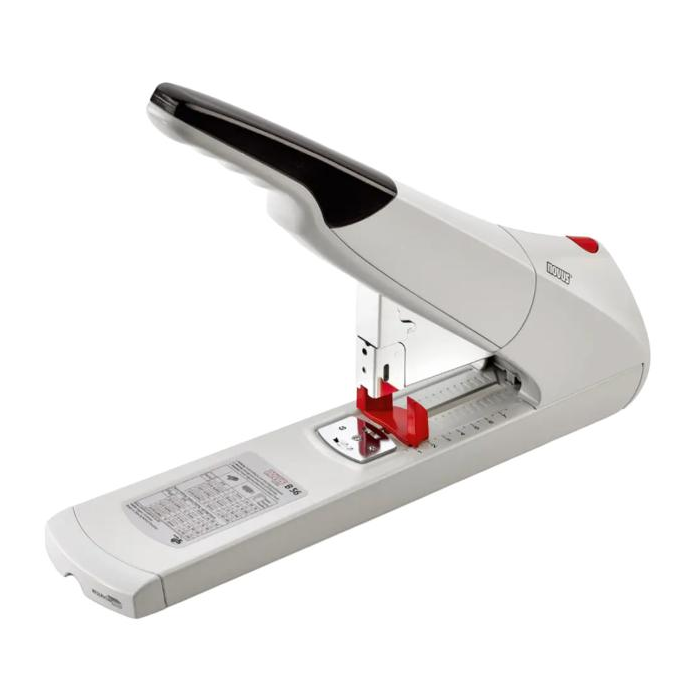 Extrémne silná celokovová veľkokapacitná zošívačka s plastovým telom. Kapacita zošívania do 210 listov, vybavená anti blokovacím ABS systémom pre bezproblémové zošívanie. Kovový zásobník s dvojitým vedením spiniek. Systém „bypass“ umožní použitie iba jednej veľkosti spiniek tým, že spinku ohne do bokov. Kapacita náplne 100 spiniek 23/ 8 až 23/ 24 SUPER. Variabilná hĺbka zošívania do 7,5 cm. Hmotnosť cca 2 100 g. Záruka 25 rokov. Farba sivá.