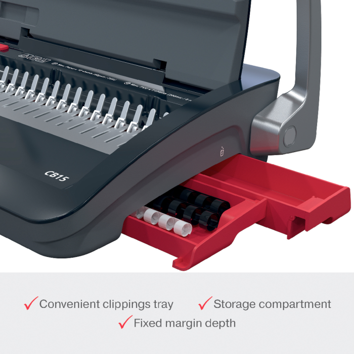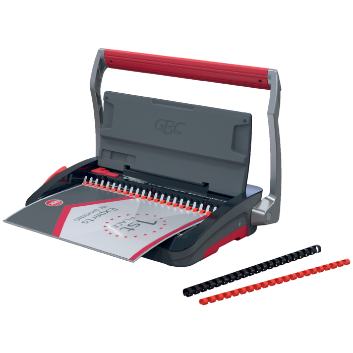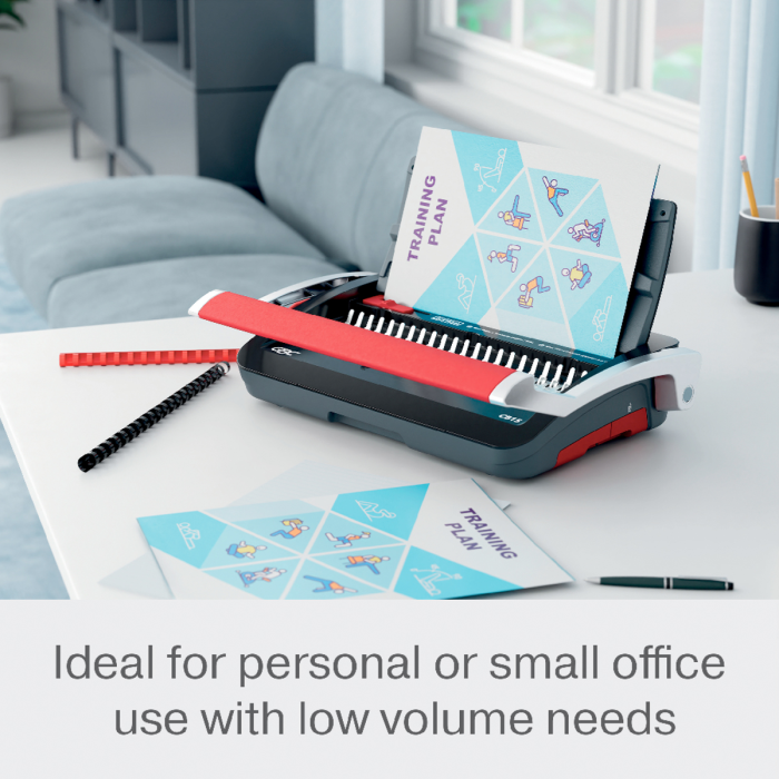 • spoľahlivý a kompaktný ručný viazač s plastovými chrbtami • ideálny na osobné použitie alebo do malých kancelárií s nízkym objemom väzby • predieruje až 15 listov papiera s gramážou 80 g/m² formátu A5/A4 naraz pomocou hrebeňa • zviaže až 165 listov naraz pomocou 19 mm chrbtov • možno používať kdekoľvek a kedykoľvek a jednoducho uložiť, keď sa nepoužíva • pre väčšie pohodlie obsahuje zásobník na odrezky pre jednoduchú likvidáciu a praktický úložný priestor • ručný dierovač s dvoma pákami pre hladký zážitok z viazania s minimálnou námahou • nastavenie bočného okraja pre presné zarovnanie a konzistentné výsledky väzby • pevná hĺbka okraja pre konzistentnú a vysokokvalitnú väzbu • protišmykové gumové nožičky pre stabilné a bezpečné umiestnenie • praktická priehradka na odrezky a vstavaný úložný priestor pre lepšiu organizáciu • rozmery 458 x 395 x 264 mm • farba čierna alebo strieborná