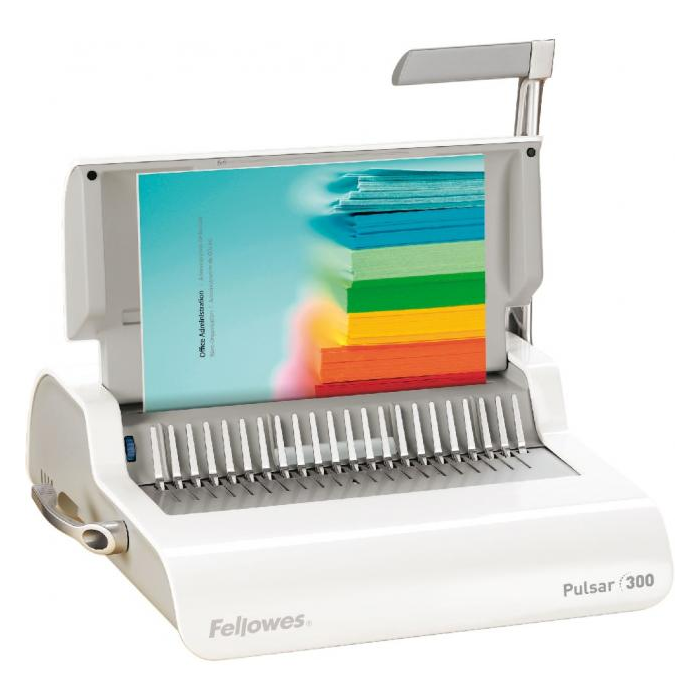 Zariadenie s manuálnym dierovaním do každej kancelárie. Jednoduché na použitie, elegantné a praktické. Pevný dizajn s možnosťou vertikálneho zloženia pre šetrenie s pracovným miestom v prípade dlhšieho nepoužívania. Súčasne predieruje do 15 listov papiera A4 80 g. Zviaže do 300 listov 80 g papiera (priemer hrebeňa 6 až 38 mm). Súčasťou balenia sú hrebene a obálky na zviazanie 10 dokumentov.