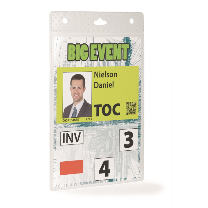 Visačka bez remienka Visačka z PP s perforáciou na uchytenie. Ideálna na vybavenie väčšieho počtu osôb na konferenciách, výstavách a pod. Dodávaná spolu s etiketou formátu A6. Použiteľná s textilným remienkom, výsuvným kotúčom alebo retiazkou. Balenie 20 kusov. Vnútorný rozmer: š105xv148mm