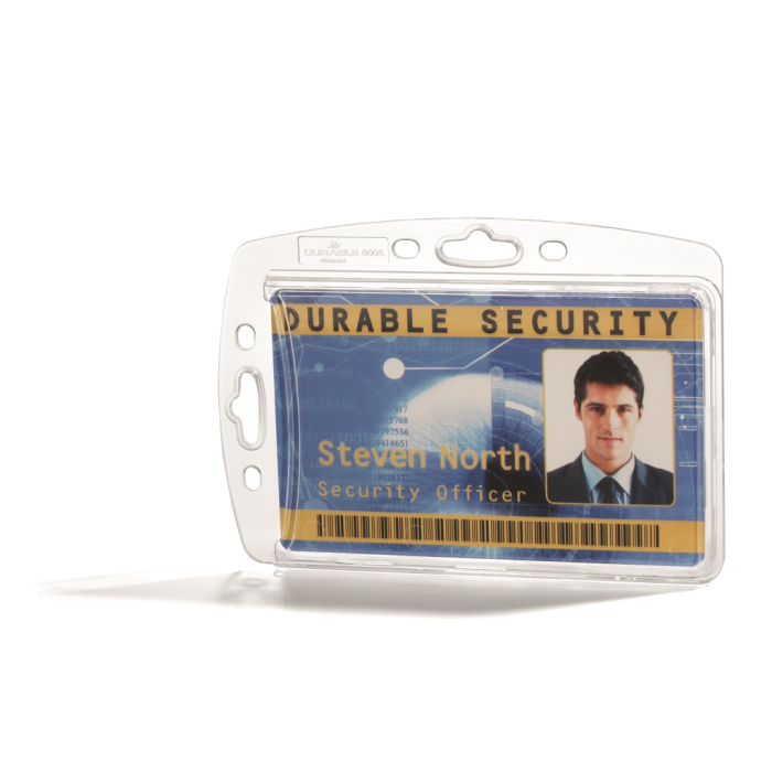 Uzavretá visačka na jednu plastovú kartu zo silného priehľadného nepružného plastu, chrániaca karty z oboch strán. Vkladanie kariet po kratšej strane. Možnosť použitia horizontálne aj vertikálne, kombinovateľná s klipom, remienkom a retiazkou. Balenie 10 ks.