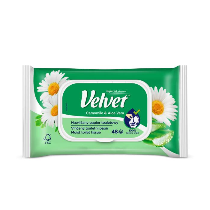 Vlhčený toaletný papier VELVET Camomile a Aloe vera 48 ks