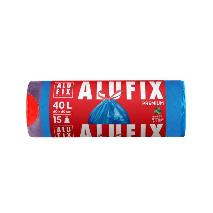 Vrecia na odpadky Premium, zaťahovacie , vyrobené z LDPE materiálu, modré. Vrece je pevné, určené do domácností alebo kancelárie a vďaka zaťahovaciemu systému veľmi praktické. Rozmer 53 x 60 cm, objem 40 litrov, množstvo 15 ks na rolke, hrúbka 20 mikrónov.