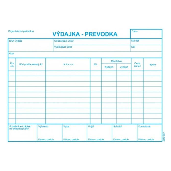 Výdajka - prevodka, A5, bez DPH, samoprepis s kart. obálkou a podložkou