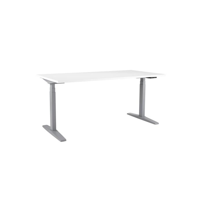 Výškovo nastaviteľný stôl BASIC, 2-motorový, 138x80 cm, podnož sivá + doska biela