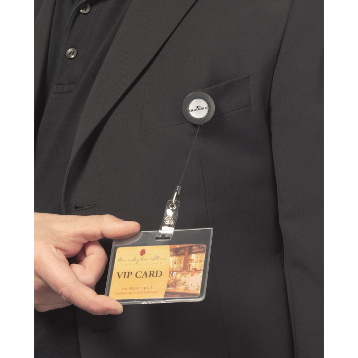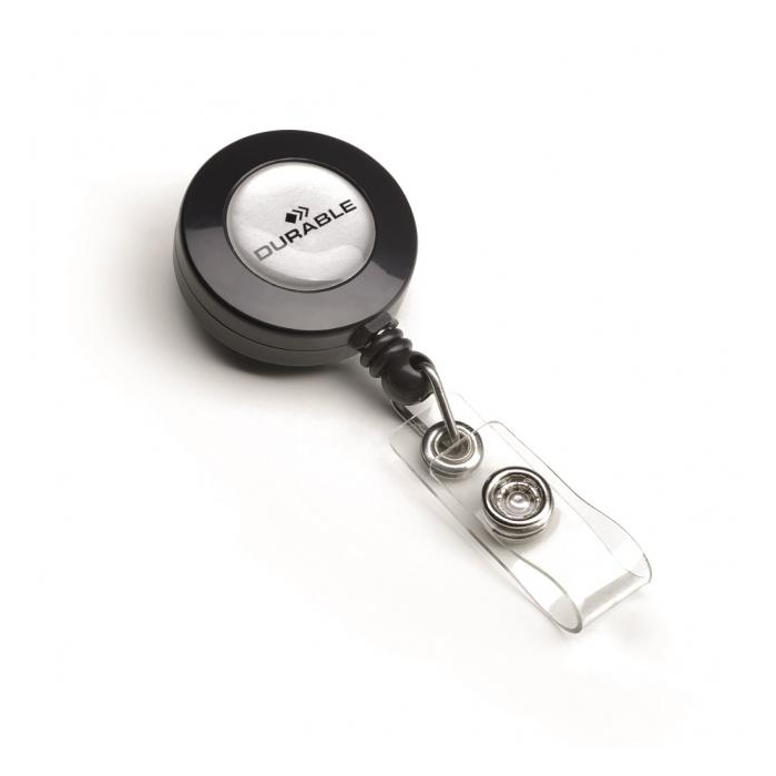 Vysúvací kotúčik s možnosťou vysunutia do 80 cm. Vhodný na uchytenie všetkých visačiek značky Durable s perforáciou. Priemer kotúča 30 mm. Balenie 10 ks. Farba: antracitová