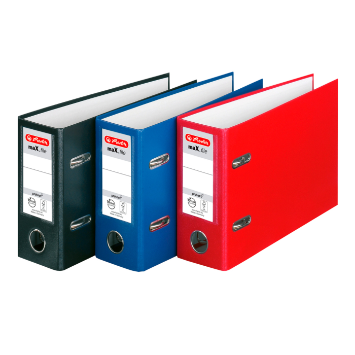 Zakladač maX.file protect formátu A5 s kvalitnou pákovou mechanikou, potiahnutý polypropylénovou fóliou. Vybavený chrbtovým krúžkom pre lepšiu manipuláciu, vreckom s vymeniteľným chrbtovým štítkom a uzatváracím mechanizmom. Vnútorný biely podlep. Šírka chrbta 7,5 cm. Formát A5 na šírku. Farba červená. Väčšie balenie 10 ks.