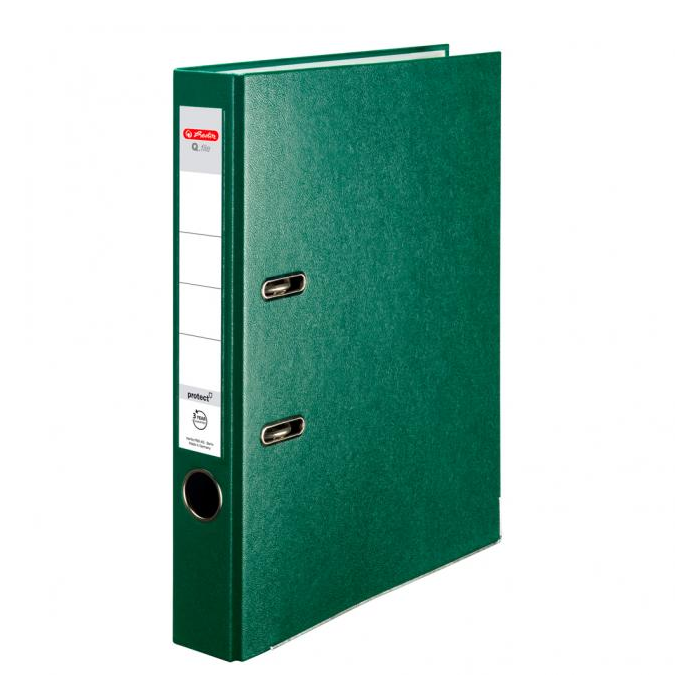 Pákový zakladač Q.file protect formátu A4. Šírka chrbta 5 cm. Materiál polypropylén, zásuvné vrecko, vnútorný biely podlep, lepenka 2mm, otvor na zadnej strane a radokrúžok pre lepšiu manipuláciu, kovová lišta. Farba zelená. Balenie 25 ks.