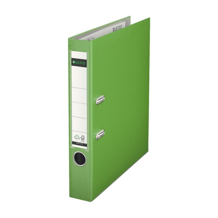Patentovaný pákový celoplastový zakladač formátu A4 vyrobený z kvalitného kartónu. Vonkajšia strana potiahnutá farebnou polypropylénovou fóliou, vnútorná svetlosivou fóliou. Zakladač je vybavený vysokokvalitnou mechanikou Leitz, chrbtovým krúžkom, kovovou lištou a vymeniteľným papierovým štítkom na popis. Vysokokvalitná mechanika umožňuje o 50 % širšie otvorenie zakladača než dovoľuje bežná páková mechanika, čo znamená až 20 % úspory času pri manipulácii a archivácii dokumentov. Šírka chrbta 5,2 cm. Väčšie balenie 10 ks. Farba svetlo zelená.