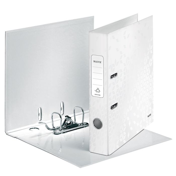 Pákový zakladač rady WOW v žiarivej perleťovo bielej farbe s dvojfarebným efektom. Unikátna patentovaná mechanika Leitz 180° poskytuje širšie otvorenie, možnosť zakladania väčšieho množstva papierov a o 20 % rýchlejšiu prácu so zakladačom. Vybavený chrbtovým krúžkom, rado zámkom a samolepiacim chrbtovým štítkom, ktorý môže byť v prípade potreby odstránený. Šírka chrbta 5 cm, kapacita 350 listov. Väčšie balenie 10 ks.