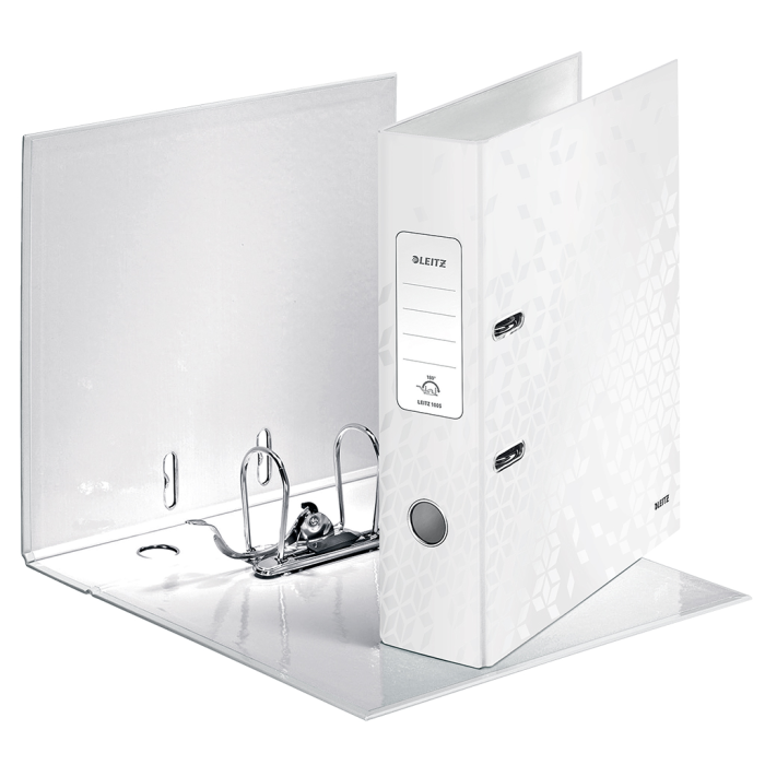 Pákový zakladač rady WOW v žiarivej perleťovo bielej farbe s dvojfarebným efektom. Unikátna patentovaná mechanika Leitz 180° poskytuje širšie otvorenie, možnosť zakladania väčšieho množstva papierov a o 20 % rýchlejšiu prácu so zakladačom. Vybavený chrbtovým krúžkom, rado zámkom a samolepiacim chrbtovým štítkom, ktorý môže byť v prípade potreby odstránený. Šírka chrbta 8 cm, kapacita 600 listov. Väčšie balenie 10 ks.