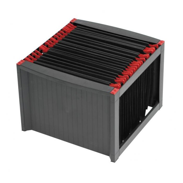 Zásobník vhodný na závesné obaly A4 s prístupom zhora. Jednoduchá montáž, možnosť stohovania. Kapacita cca 40 závesných obalov typu V.