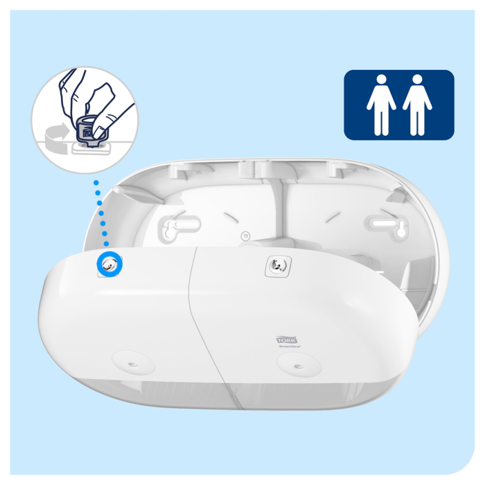 Zásobník Tork SmartOne® mini dvojitý na toaletný papier v kotúči, biely T9