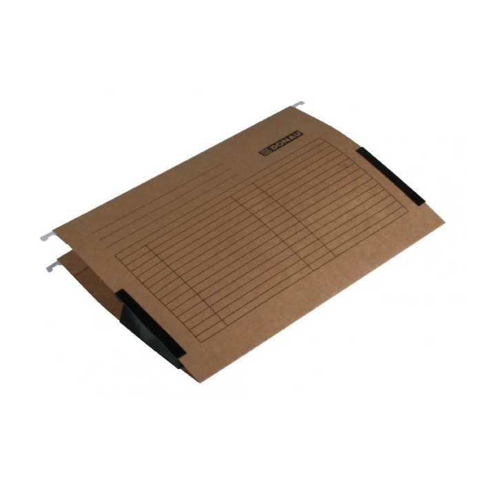 Závesný obal na zakladanie voľných listov do formátu A4. Plátené bočnice zabraňujú vypadnutiu dokumentov z obalov, kovové závesné háčiky garantujú dlhodobé používanie. Súčasťou obalu je plastový index a papierový štítok. Farba: hnedá Balenie: 25 ks