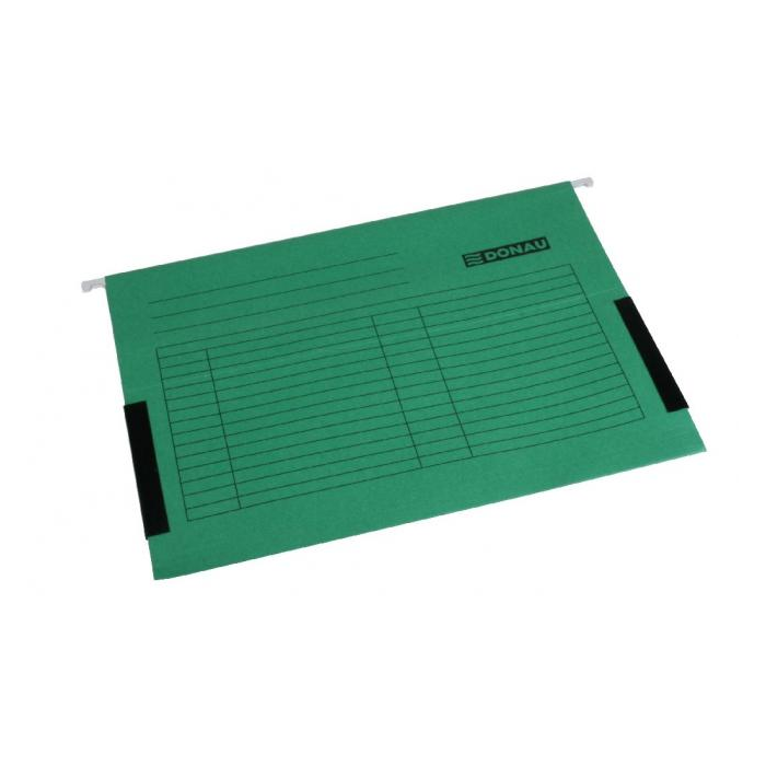 Závesný obal na zakladanie voľných listov do formátu A4. Plátené bočnice zabraňujú vypadnutiu dokumentov z obalov, kovové závesné háčiky garantujú dlhodobé používanie. Súčasťou obalu je plastový index a papierový štítok. Farba: zelená Balenie: 25 ks