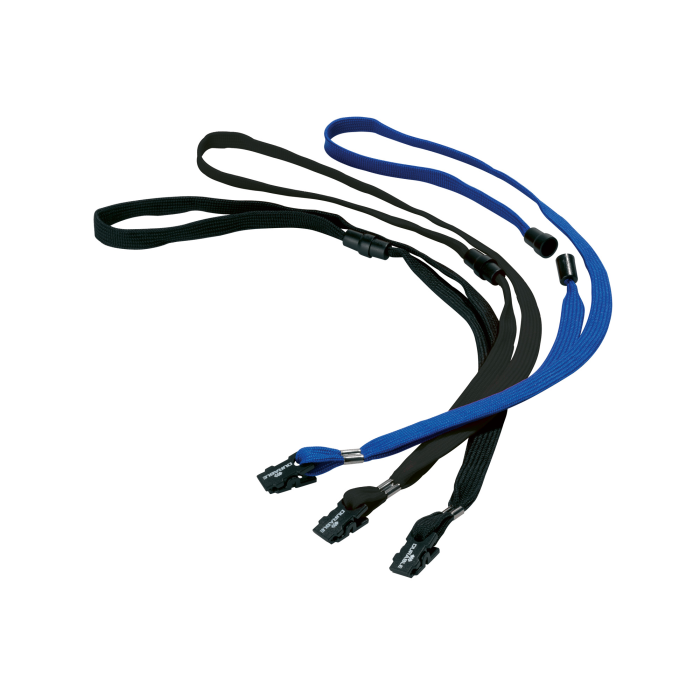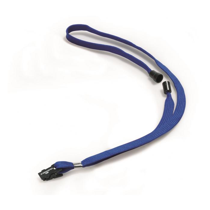 Remienok s bezpečnostnou poistkou. Poistka sa uvoľní pri zachytení remienka alebo silnom potiahnutí. Vhodný ku všetkým visačkám značky Durable. Dĺžka 44 cm, šírka 10 mm. Balenie 10 ks. Farba: modrá
