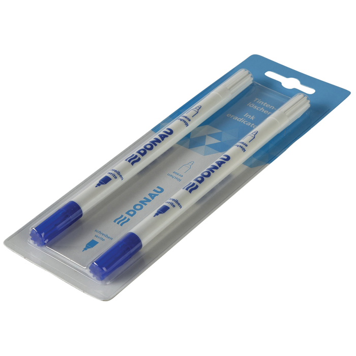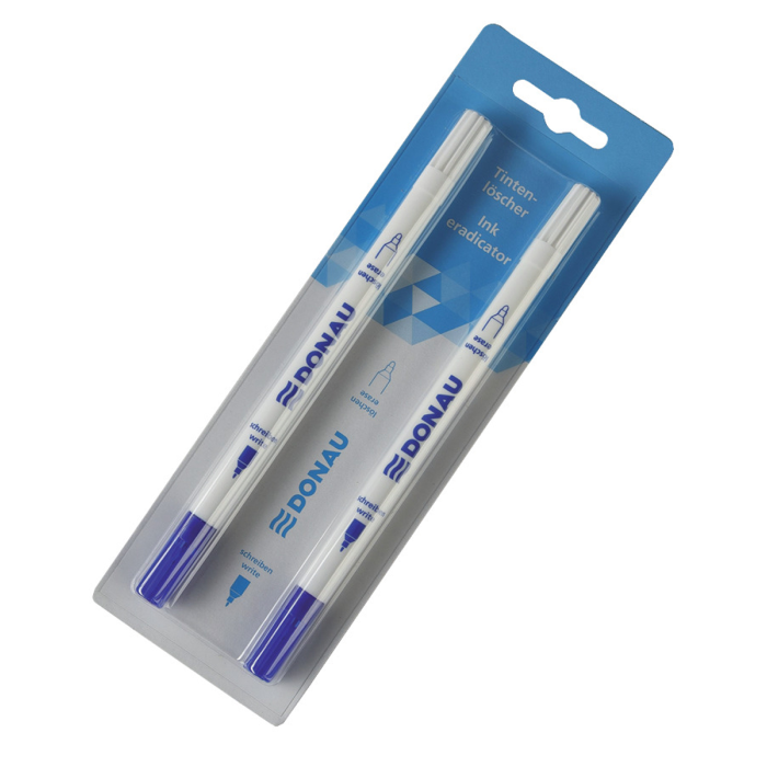 Zmizík s okrúhlym hrotom DONAU na vymazávanie a tmavomodrým hrotom na prepisovanie, blister 2ks