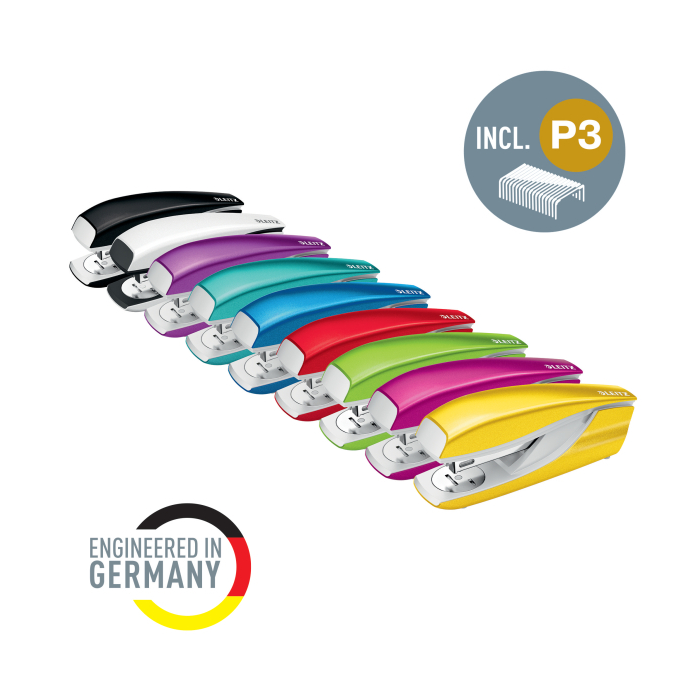 Dodajte svojmu pracovnému miestu alebo domácnosti farbu a skombinujte s ostatnými kancelárskymi výrobkami z radu Leitz WOW. Na spinky Leitz Power Performance P3, 24/6 a 26/6. Vrátane štartovacieho balenia. Praktický integrovaný vyberač spiniek. Farba metalická zelená.