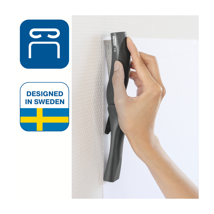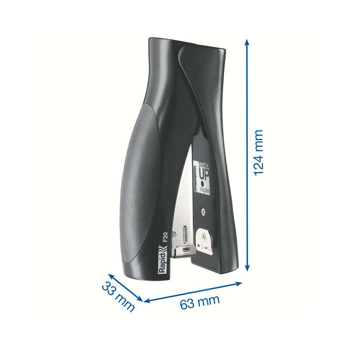 Vždy po ruke vo vzpriamenej polohe, perfektný výkon vďaka oceľovému mechanizmu a ergonomickej gumenej rukoväti. Ideálne pre domácnosť a kanceláriu.