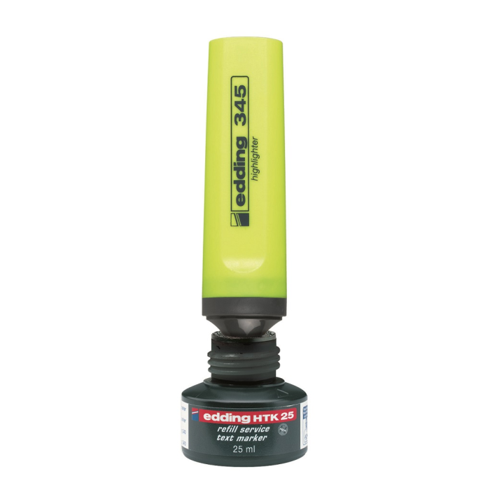 Popisovač so zrezaným hrotom so šírkou stopy 2 - 5 mm. Pre zvýraznenie textových pasáží, výstupov z atramentových tlačiarní, poznámok a pod. Vodovzdorný pigmentový atrament so silne svietivými a intenzívnymi farbami. Vhodný pre InkJet - pri zvýrazňovaní textov tlačených na atramentových tlačiarňach sa atrament nerozpíja. Dopĺňateľný atramentom HTK 25. Väčšie balenie 10 ks.